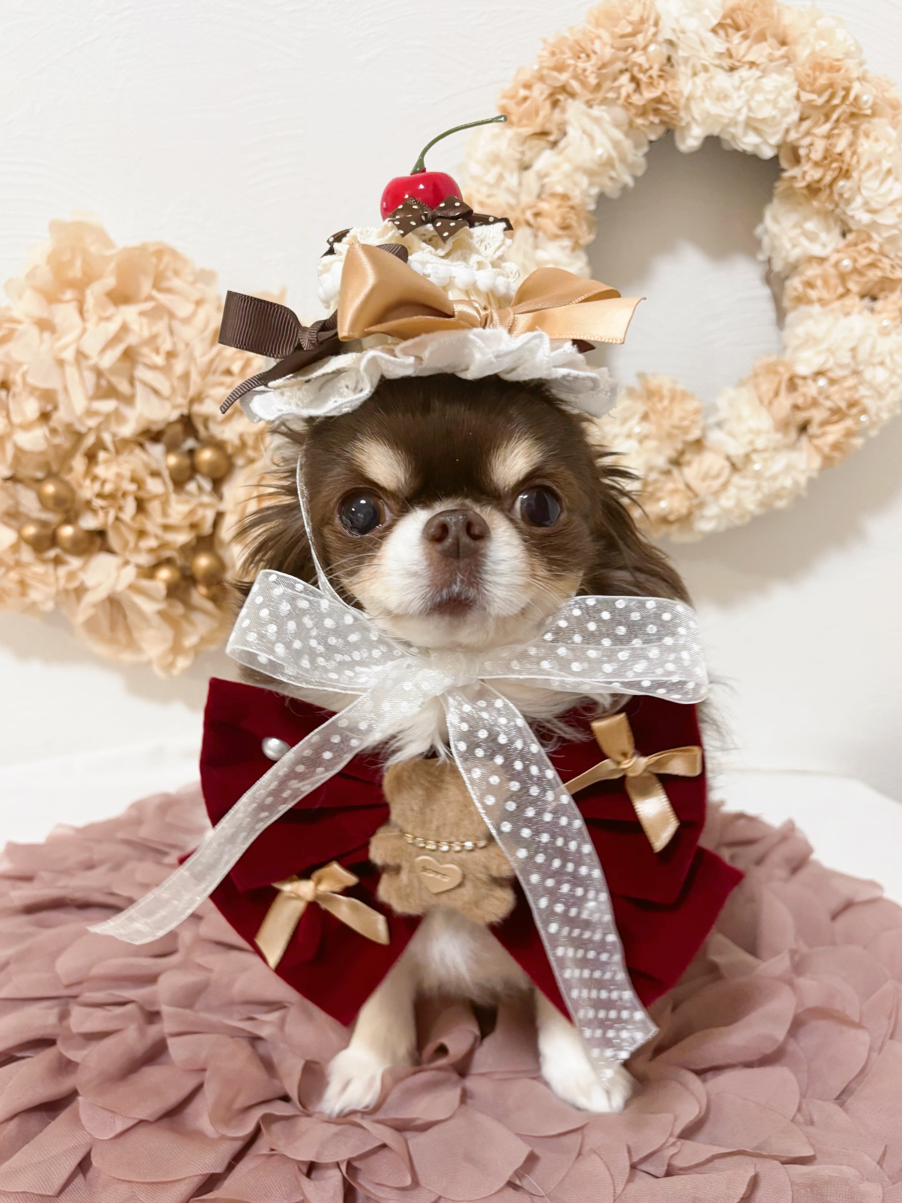 ケーキをイメージしたヘッドドレスと、赤いおリボンのチョーカーのセットです。